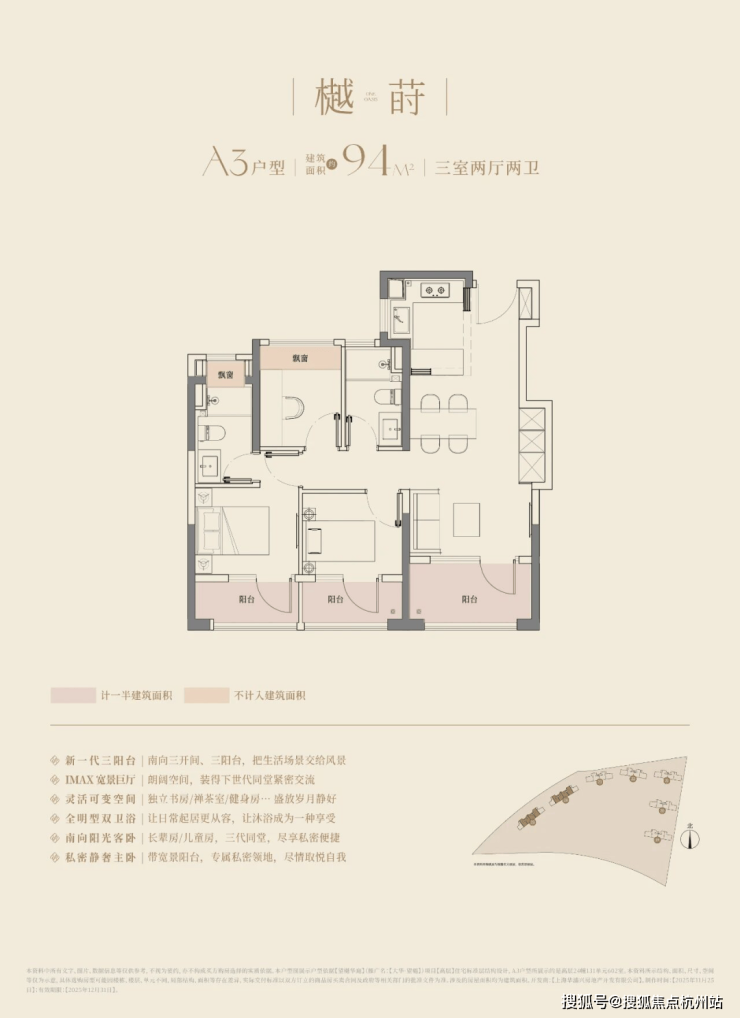 成长型户型:高层主力 94-149㎡三房四房,联排 165-180㎡,覆盖刚需、改善、终极置业全周期。