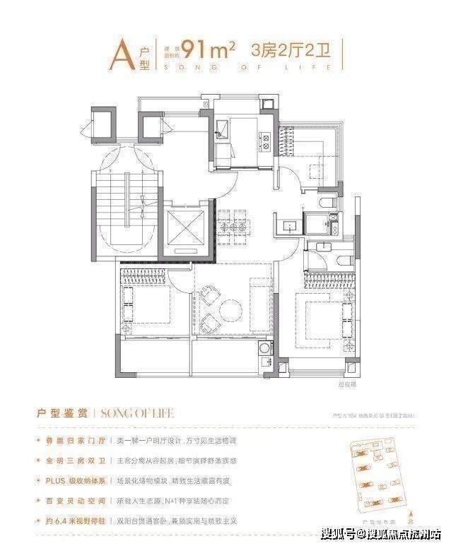 建面约102㎡三房两卫则主打“舒适升级”