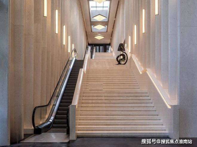 比如,弧形、奢石与灯光等相得益彰且设计感满满的架空层。