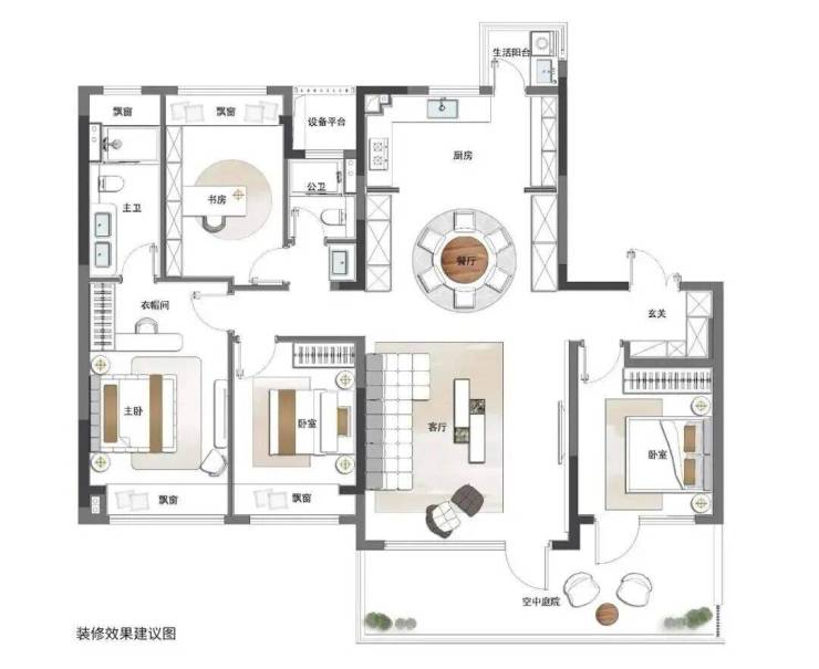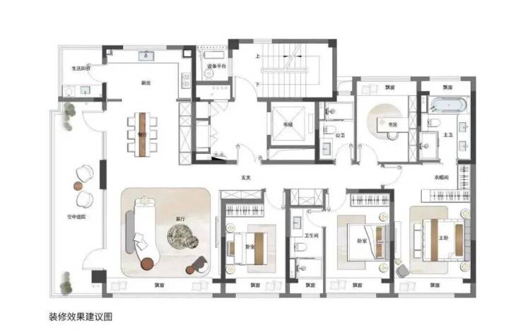 主卧套房,双衣帽间,三面采光;南向双开间阳台;双套房次卧;