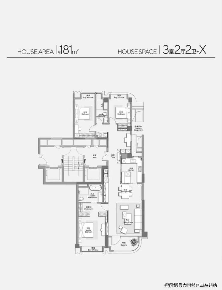 户型图&室内效果图:▼建面约181㎡3房2厅2卫