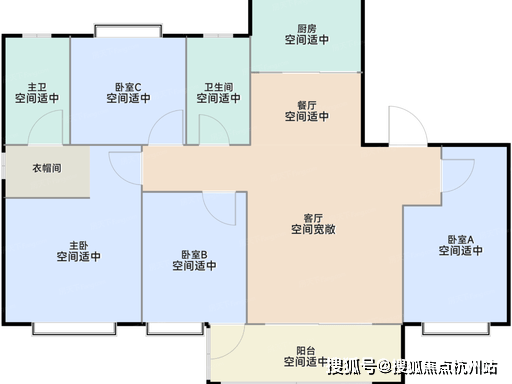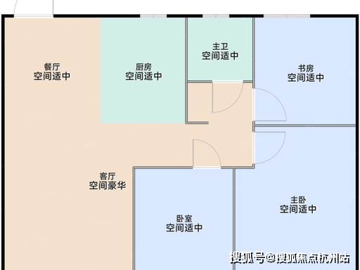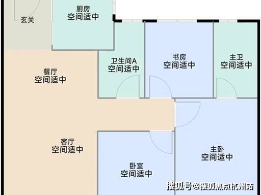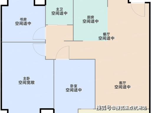 亮点:主卧套房(独立卫浴 + 南向飘窗),双卫干湿分离;动静分区合理,北向多功能房灵活可变;得房率约 80%