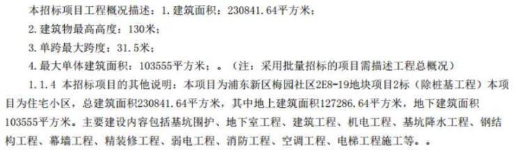 本项目 总建筑面积约为230841.64平方米,地上建筑面积约为127286.64平方米,地下建筑面积约为103555平方米。建筑物最高高度130米。