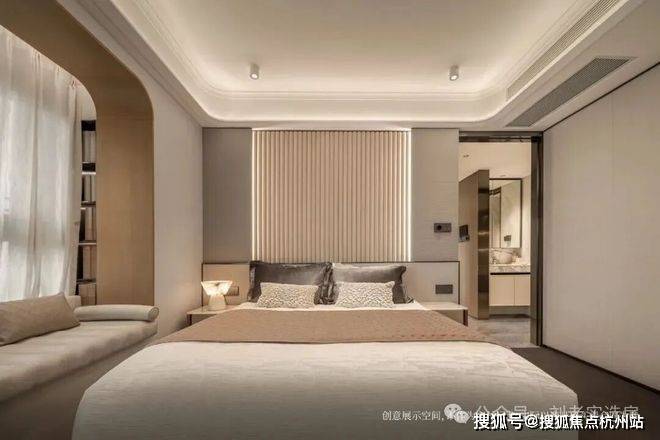 整个主卧尺度感是非常宽绰的,加上飘窗带来的视野延展以及收纳空间,居住舒适度拉满。