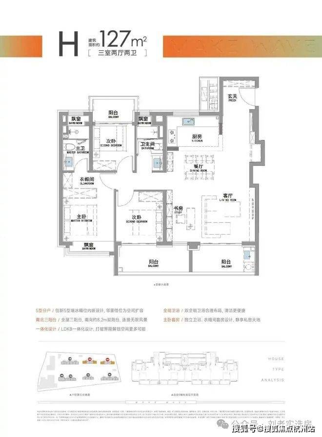 “南向双阳台+南北双飘窗”,构筑真3房户型!