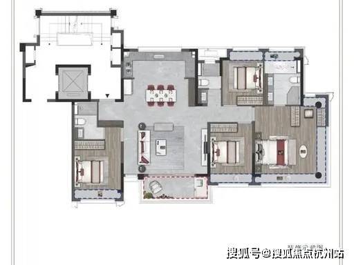 162㎡四房两厅三卫,奢阔四房,双套房设计,主卧与次卧均为套房,配备独立卫浴,保障居住私密性,南北通透,全明采光,客厅连接宽景阳台,视野开阔,餐厅连接北向飘窗,赠送面积大,空间利用率高,适合三代同堂或高端改善家庭居住。