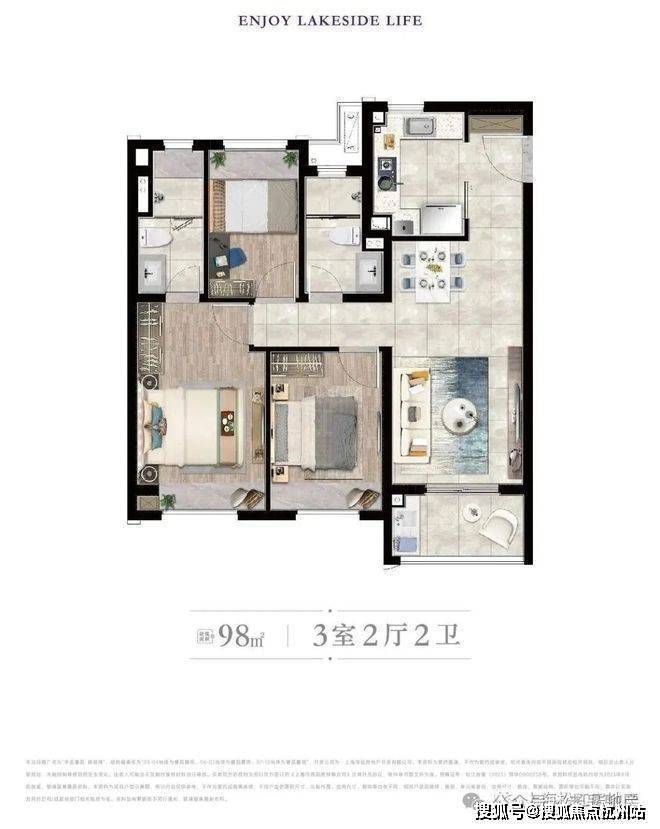建筑面积约98㎡三房,总价507起