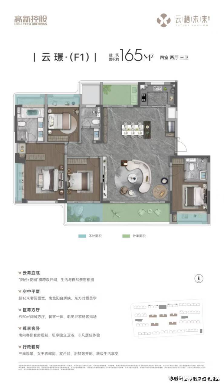 LDKBG五维交互空间:客厅、餐厅、厨房、阳台、花园一体化设计,打破空间界限,143㎡户型实现“小户型大生活”。