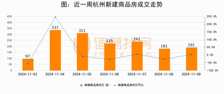 【杭州成交日报】11月09日新房成交191套、二手房321套;涨价房源45套