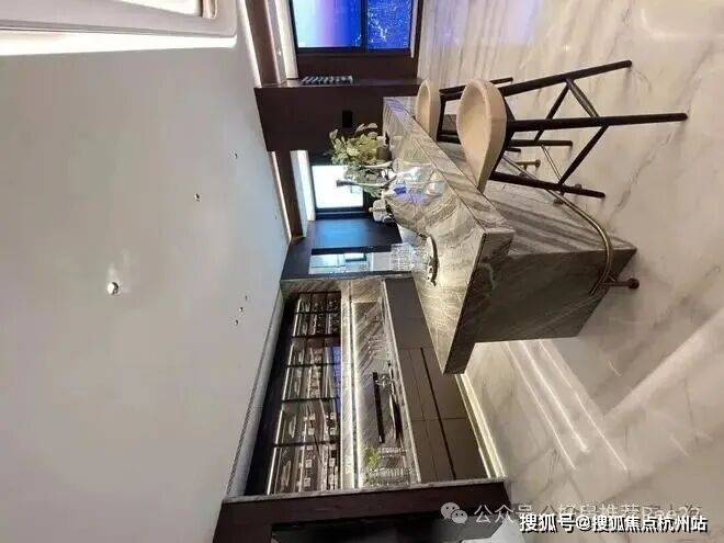 更细节的是,西厨吧台采用“东方木纹石材”,独特纹理与质感让每一次咖啡手冲都成为“生活美学的展示”。