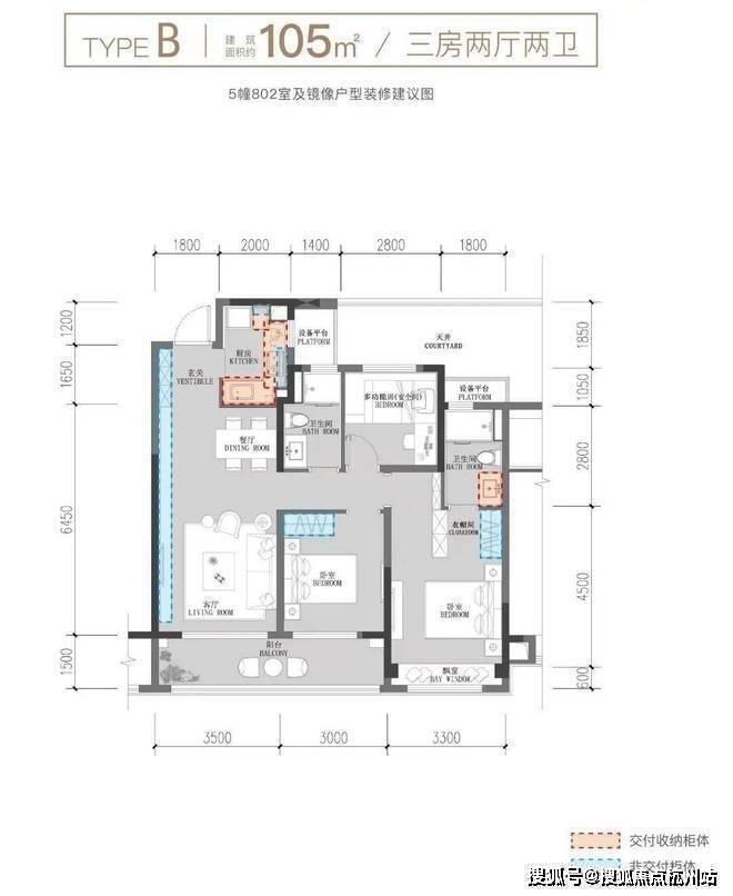 建面约105方户型图示意