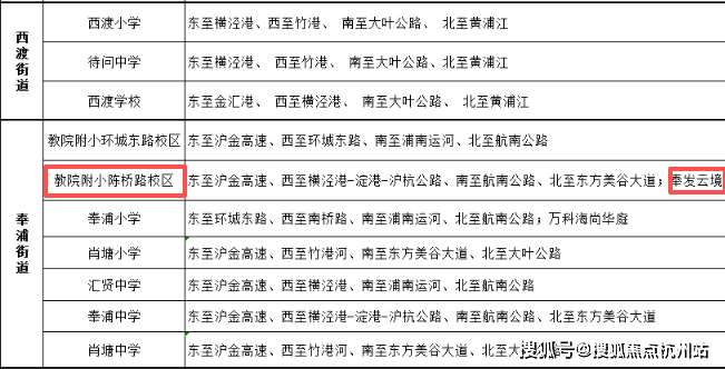 2026年奉贤区域学校片区规划