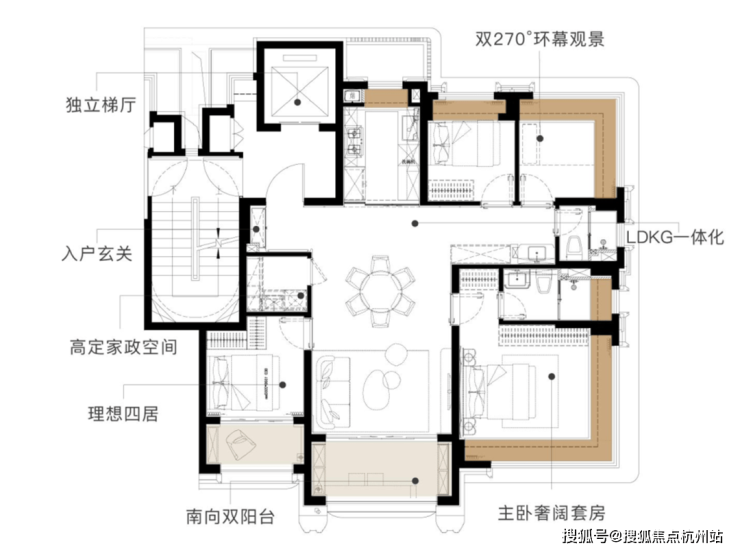 新奢配和新人本主义在公区体现的更为精妙!如果回到室内,新她享和新定制主义则更为吸睛!