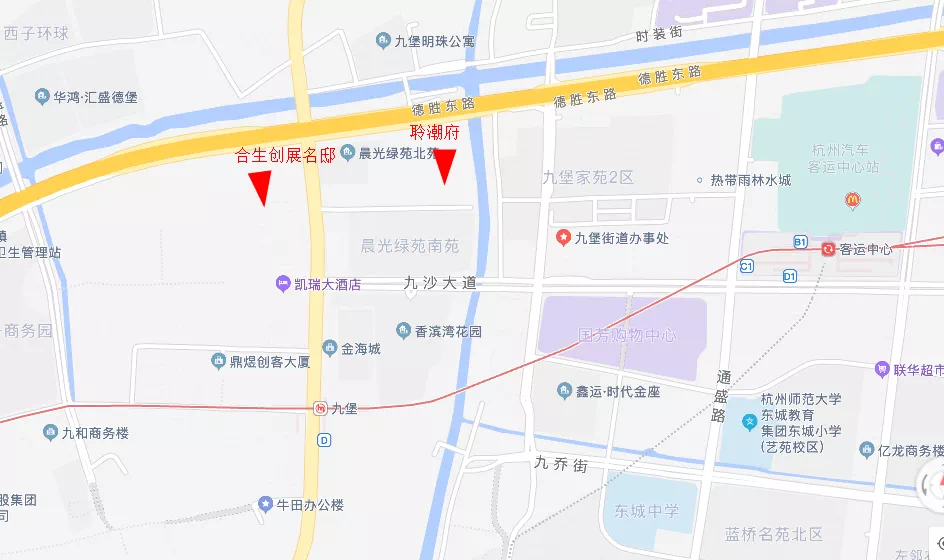 聆潮府与合生创展名邸仅隔一条杭海路,但聆潮府却属于九堡板块。