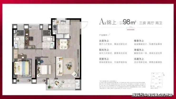 建面约88-98㎡精装3房
