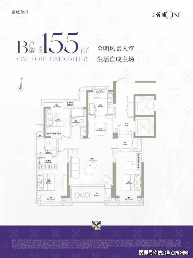 上海绿城黄浦ONE售楼处电话☎:400-998-9694(预约看房热线) 中间套是155平的3房2厅2卫, 采用最标准的3开间朝南飞机户型,重点是户内装标确实蛮顶的,玄关铺设鱼肚印象奢石,客厅背景墙采用意大利超白洞,卫生间台面和墙面采用芬迪白,地面铺设巴西进口静雅棕石材。