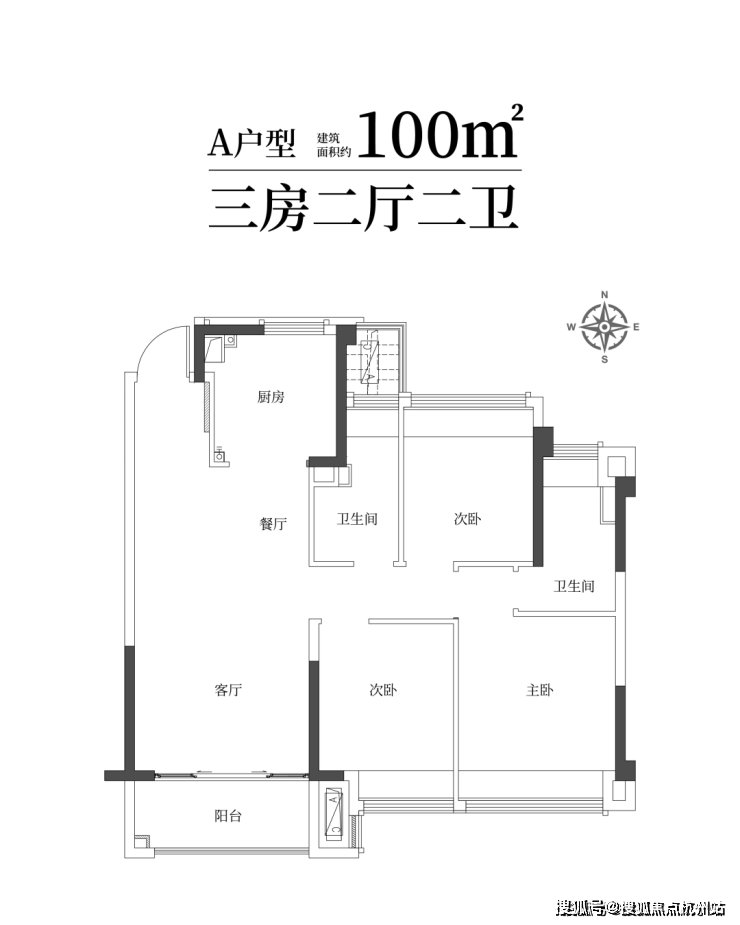 建筑面积约100㎡雅致三房两卫 ,满足二娃时代