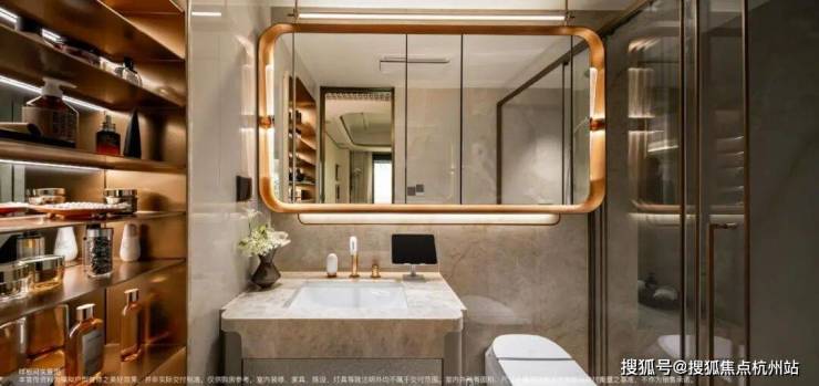 走进主卫,镜柜是高端定制款,内部带美妆冰箱,能放护肤品、化妆品。