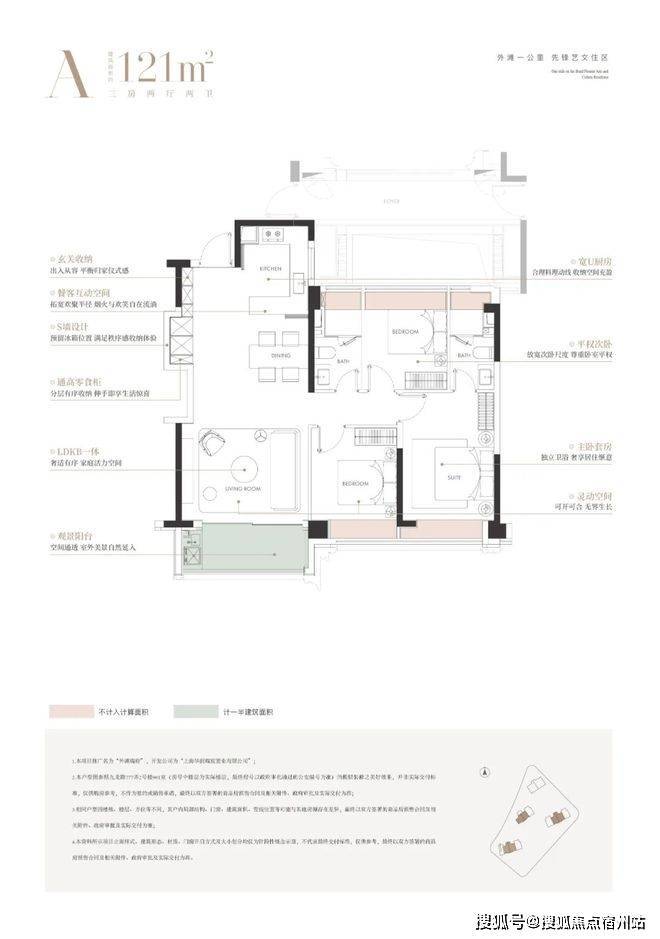 建面约121㎡三房