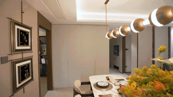 餐客厅阳台一线贯通,动线流畅 ,弧形阳台拓展景观视野。