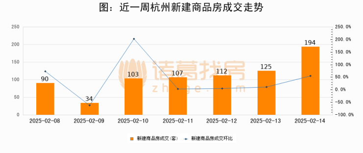 【杭州成交日报】02月14日新房成交194套、二手房156套;涨价房源77套