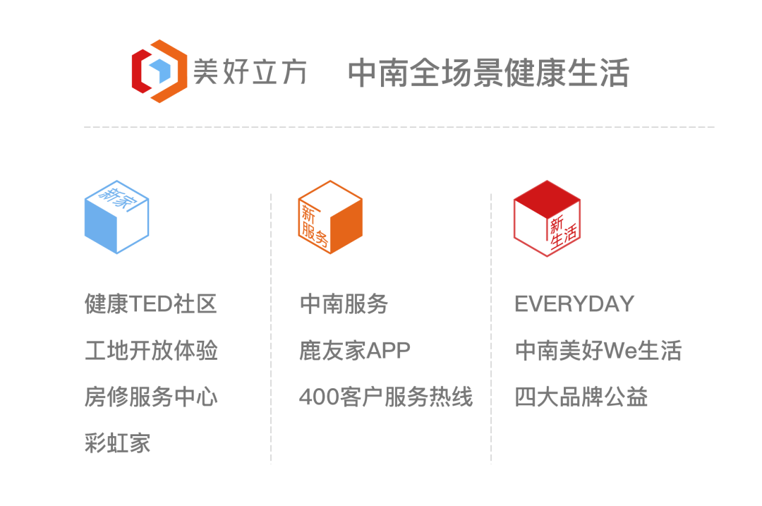 面对客户到访到客户签约,再到正式交付的漫长等待周期,如何让消费者深度了解未来家园?2021年,中南坚持产品力与服务力的双向提升,通过“新家”、“新服务”、“新生活”三个维度,由点及线,串线成面,构筑起「美好立方」体系。