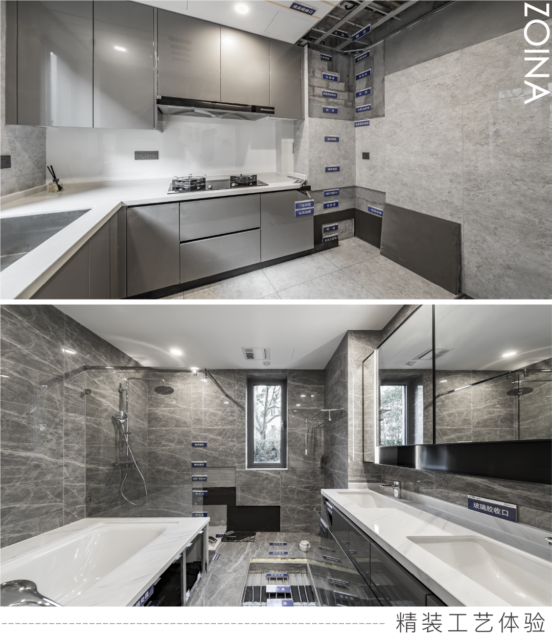 在棠玥湾精装修工法体验区,“卫生间墙面防水到顶”、”烟道的检测必须经过三次“、”吊顶的稳定性要增加转角加固、斜拉加固、基座加固“……188道精装细节,234条过程质量检查项、63个关键部位交付前验收、十八条质量管理红线、360度全屋防漏系统都是中南人对标准的坚守,对流程的严苛,以及对无数细节和工艺工法的执着,是看不见的优质产品品质。