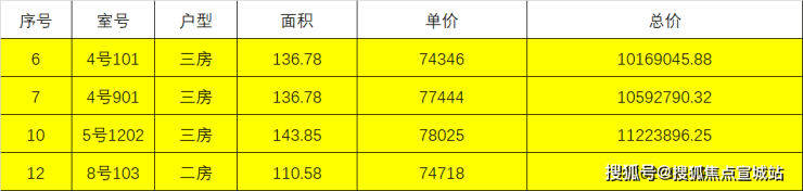 4套在售房源如下表: