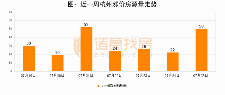 根据诸葛找房数据显示,杭州24小时涨价房源量为50套,较07月24日增加28套,环比上涨127.3%。与此同时,涨价房源占比小幅扩大,业主信心有所提升。