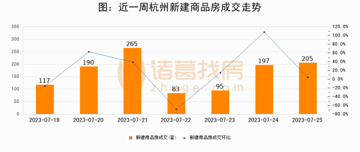 【杭州成交日报】07月25日新房成交205套、二手房181套;涨价房源50套