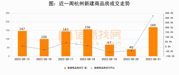 【杭州成交日报】08月21日新房成交169套、二手房200套;涨价房源25套