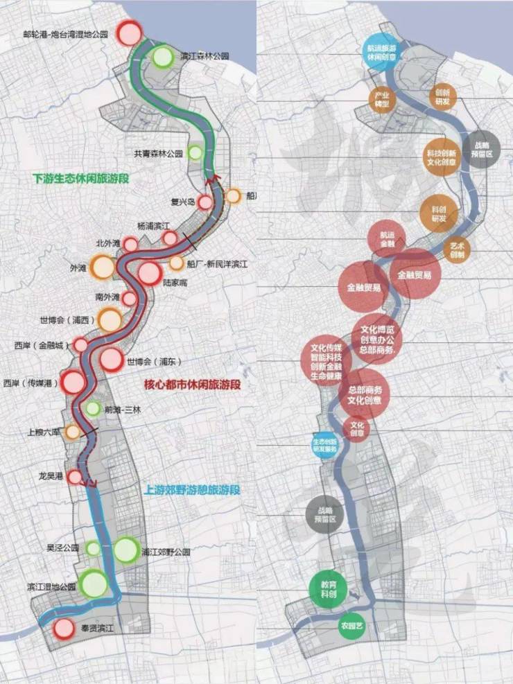 一江一河:具有全球影响力的世界级滨水区,约6.3公里江川黄浦江滨江岸线