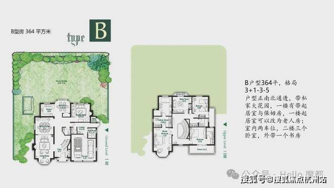纯地上两层,建面约850㎡(7房4厅6卫)