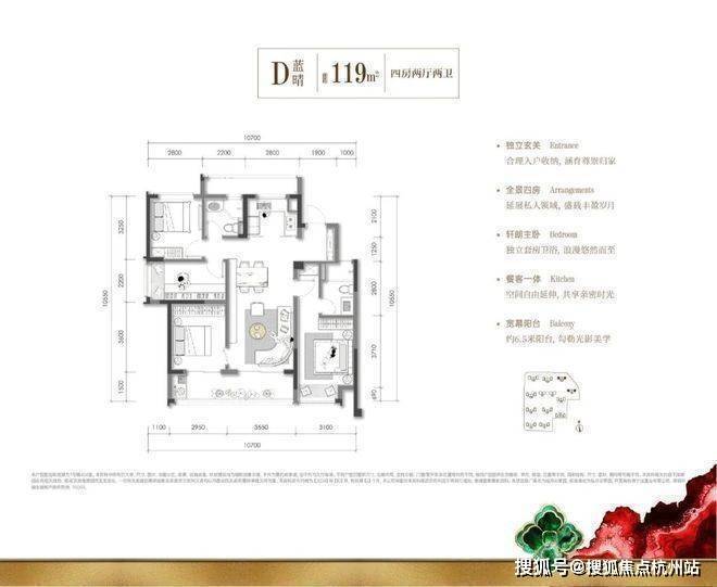 建面约119㎡精致四居,难得一遇的边套南厅舒适格局,约6.5米阳台无界连通餐客厅独立玄关、套房式主卧,直接带来居住感受的实质性跃升。