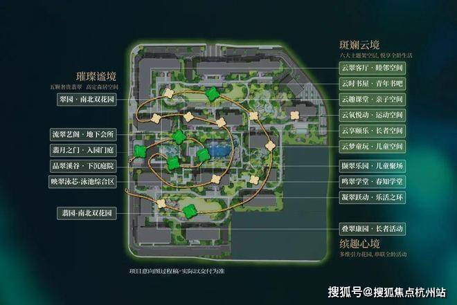 创新灵感源于19世纪美国“波士顿翡翠项链”的设计理念,通过形似“项链”的公园绿道。桂月云翠园以“翡翠项链”为母本,通过立体串联的景观手法,将归家的建筑景点逐一串联,配备下沉庭院+地下会所、泳池综合区、南北两大超5000㎡主题花园,营造高浓度生活体验。
