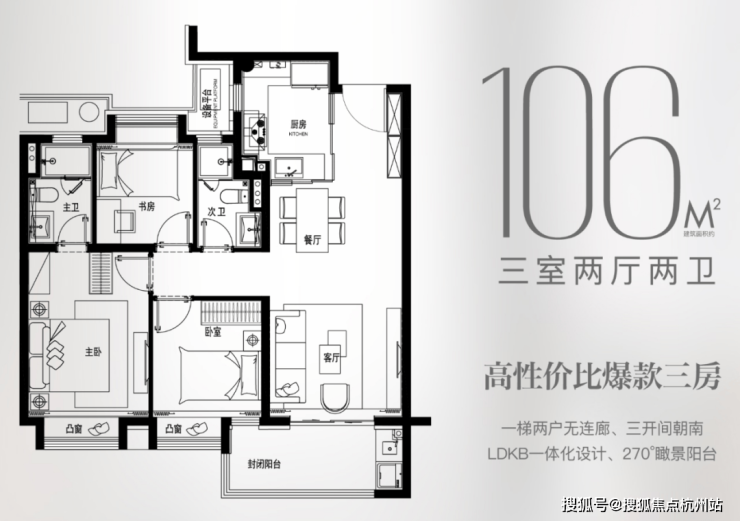 客餐厅一体化+开放式厨房+大尺度观景阳台,整个公区几乎没有面积浪费,营造的空间感和尺度感远超同价位其他竞品;