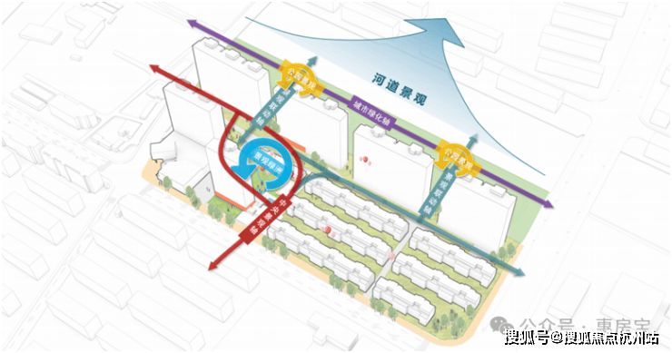 项目规划了 6幢17F小高层+6幢4F叠加 , 呈现 “南低北高” 的科学布局,让北侧小高层能无遮挡俯瞰河景,南侧叠加组团享有私密庭院,每一栋建筑都能获得充足采光与通透视野, 实现“户户有景”的均好体验 。