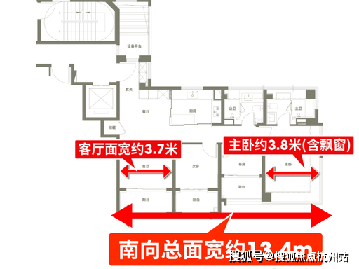 作为项目的入门级改善户型,其空间表现堪称 “现象级”。户型整体 三开间朝南 ,南向总面宽达到惊人的 13.4 米 ,在同面积段产品中几乎无对手。更为惊艳的是 三阳台全部南向布局 ,总面积约 15㎡ ,搭配全屋飘窗,不计入面积的拓展空间高达约 11.5㎡ , 实得率超 90% ,实际居住感受媲美市场上常规 140㎡户型。动静分区明确,客餐厅一体化连通中央阳台,三个卧室尺度宜人,最小次卧面积也超 12㎡,真正实现了家庭成员居住平权,是年轻精英家庭一步到位的理想选择。