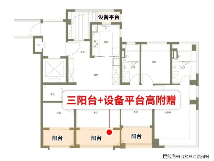 三阳台赠送面积约6.2㎡,全屋满飘窗赠送约9.28㎡,设备平台赠送约8.81㎡,实得率超95%,可以直接媲美常规140 ㎡的居住空间。