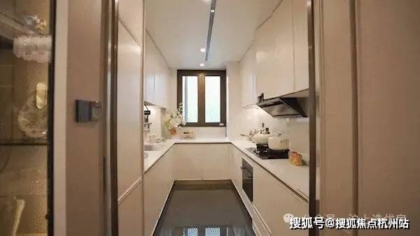 项目整个餐客厅均为 岩板 交付,岩板的尺寸达到了2.4米*1.2米,这是市面上非常罕见的大板配置,即便是市区豪宅,用的大尺寸也不过是1.8米!