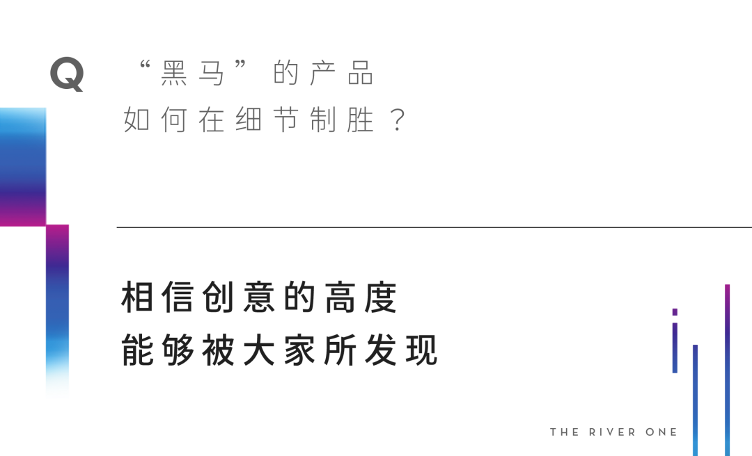 时代江来的“黑马”理念是来自项目本身,我们始终在思考,作为帝封江板块较晚面市的项目,究竟如何才能通过过硬的实力让市场铭记,同时“黑马”也映射了我们核心关注的客群,如何通过产品设计,让房子能够完全承载家的想象的同时,不让房价成为“时代黑马”们驰骋的负累。”