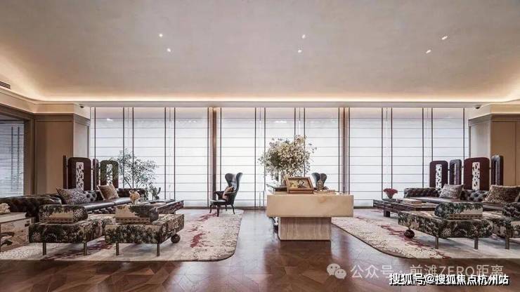 经典十字序列厅: 从私享电梯厅开始,经由对开入户门,首先就进入这样一个十字序列厅,视线远处,就是尽头观景台,这条长廊,可以是公私分区的交通枢纽,也可以是彰显主人品味的艺术长廊;