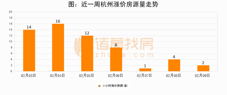 根据诸葛找房数据显示,杭州24小时涨价房源量为2套,较02月08日减少2套,环比下降50%。与此同时,涨价房源占比小幅回落,对于购房者来说是一个入市窗口期,购房者可抓住时机入市。