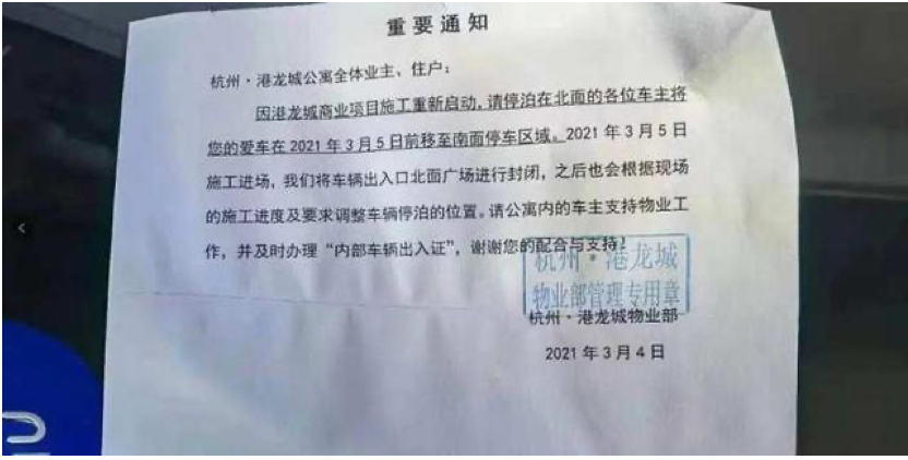 今年3月4日,港龙城物业部发出一份通知,宣告港龙城施工重启。