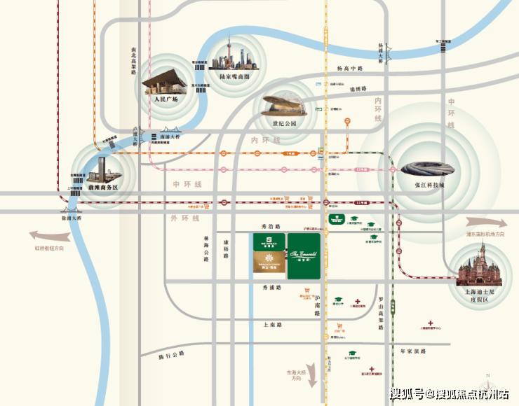 绿宝园位处康桥别墅区核心位置,距中环线仅约3.5 公里,紧邻S20, 紧邻地铁18号线康桥站。驾车可快速直达前滩、陆家嘴、张江,与迪士尼、外高桥、临港自贸区等浦东主要CBD。
