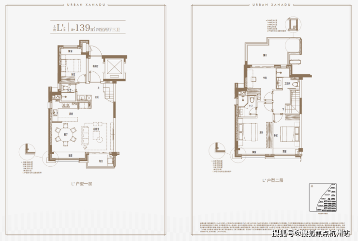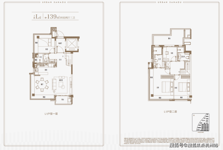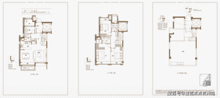 面积段为:上叠建面约139㎡,中叠建面约143㎡,下叠建面约142㎡。