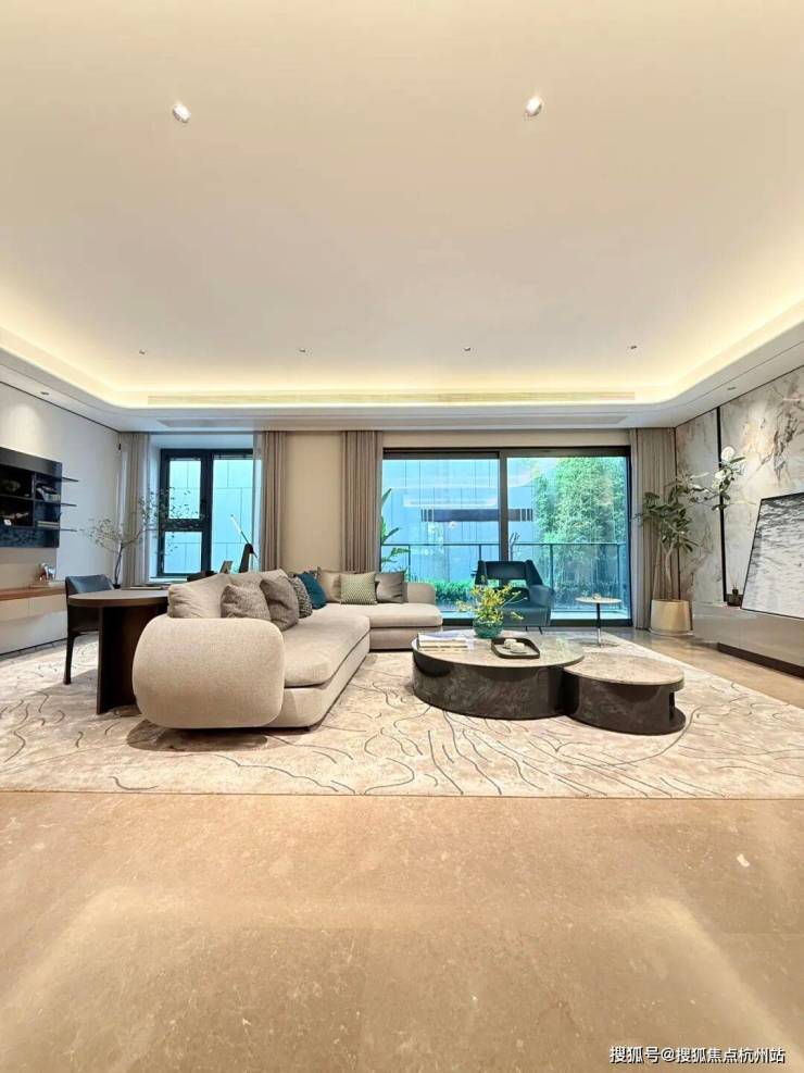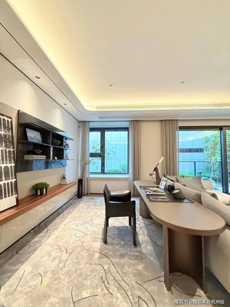 室内设计,秉承摩登东方的理念,设计以人、生活为中心,从空间本体和情感层面都回归生活,270度环幕采光,开放式会客厅设计,兼具尺度感与功能性。