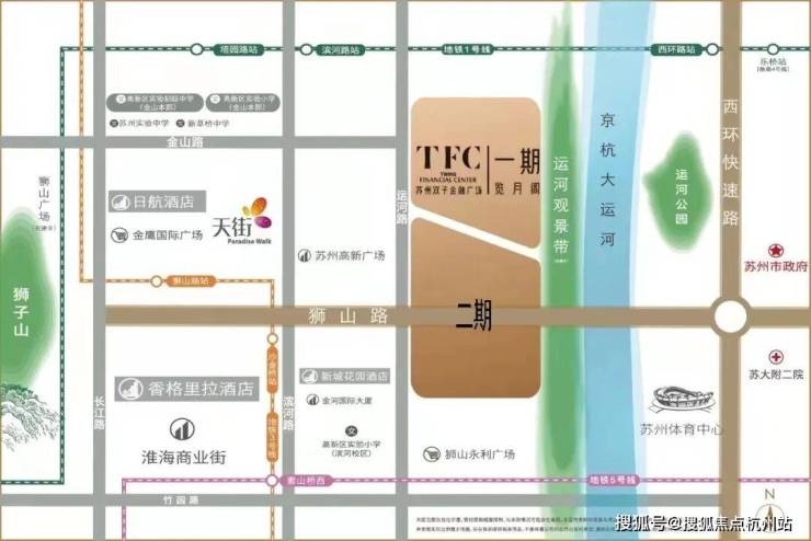 本项目在狮山桥下,京杭大运河旁,占据了新区狮山板块的核心地段,坐享新区繁华商圈,紧邻姑苏古城风韵,打造为狮山板块乃至苏州市具有代表性的地标建筑。
