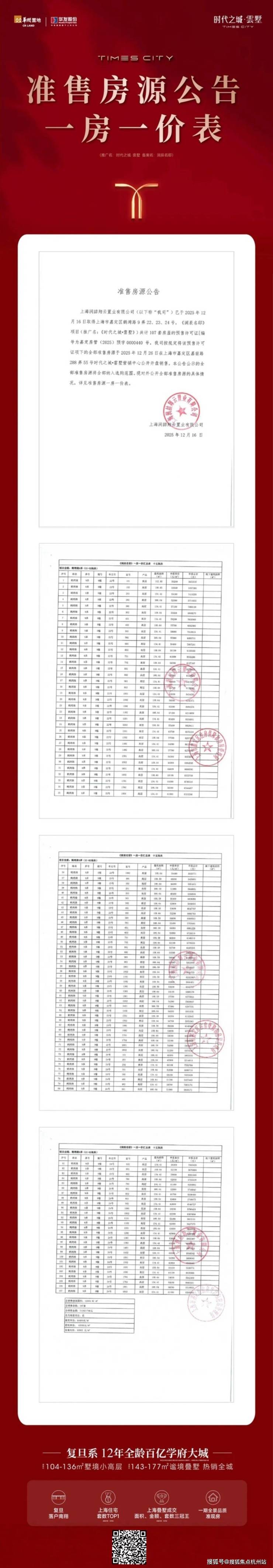 华润时代之城十五批次一房一价表:
