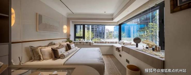 主卧拥 有 270度环幕飘窗, 视野和采光优越,配备了高奢卫生间,空间感、尊崇感拉到顶格。